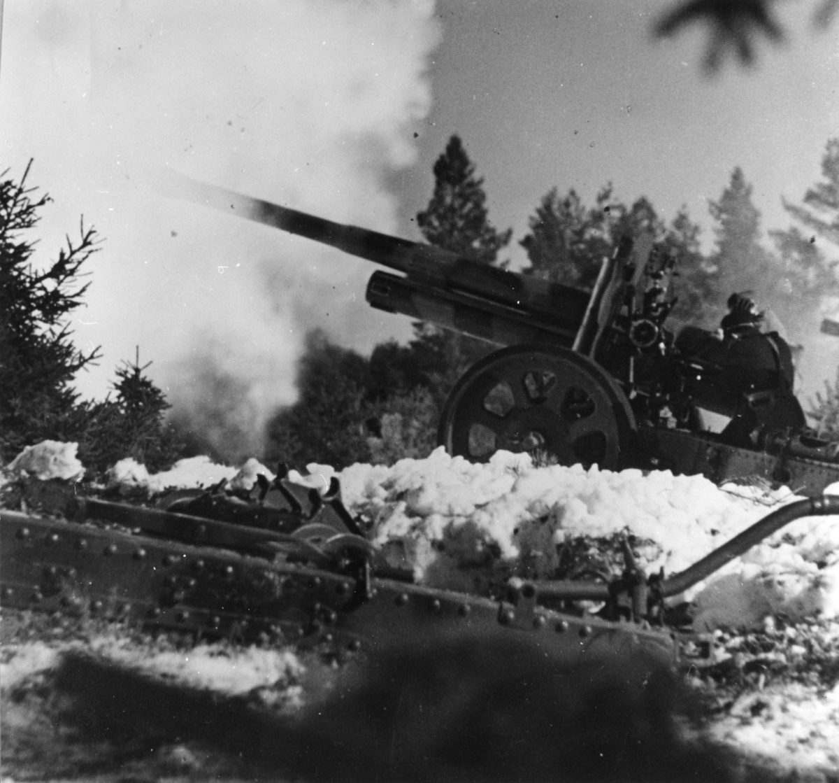 Kanon m/1934. 10,5 cm. Avfyrning.