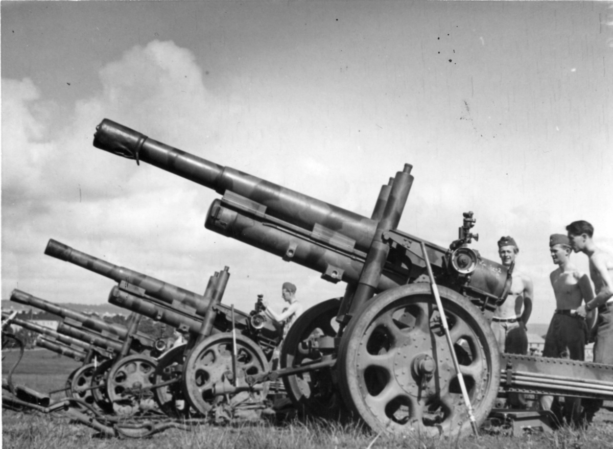 Titel: Haubits m/1939. 15 cm. Uppställda.