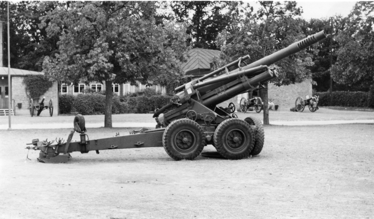 Haubits F. 15,5 cm. Uppställd på kaserngården, A 6.