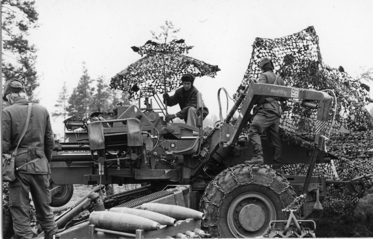 Haubits 77. 15,5 cm. Maskeringsparasoll, A 6.