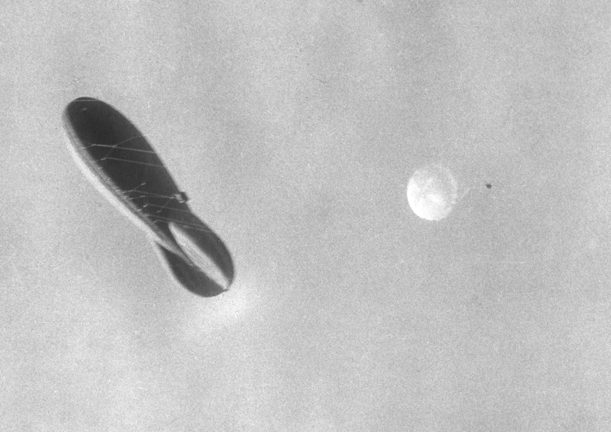 Fältballong. Försök med fallskärm från fältballong, Skillingaryd.