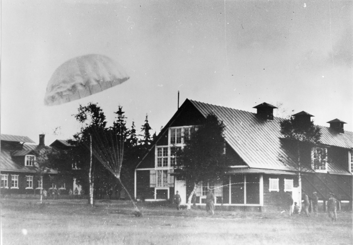 Fallskärmskast, försök från ballong. Skillingaryd, A 6.