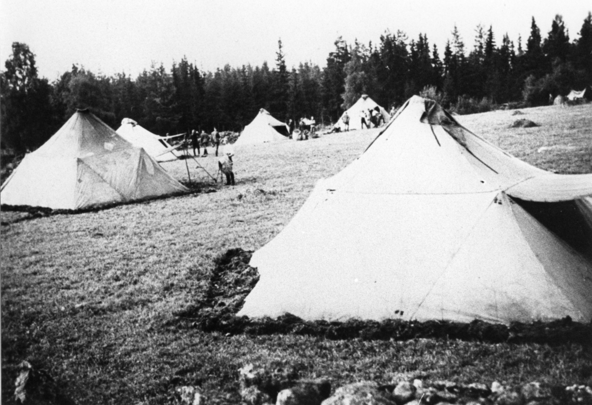 Tält m/äldre. A 6 övningsdivision, på övningsfältet i Skövde.