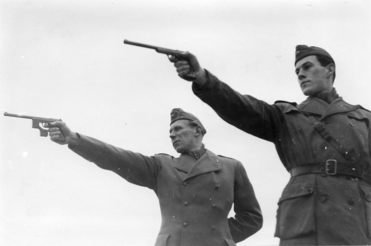 Pistolskjutning, A 6. Till hö löjtnant Gärdin.Thor Henning till vänster.