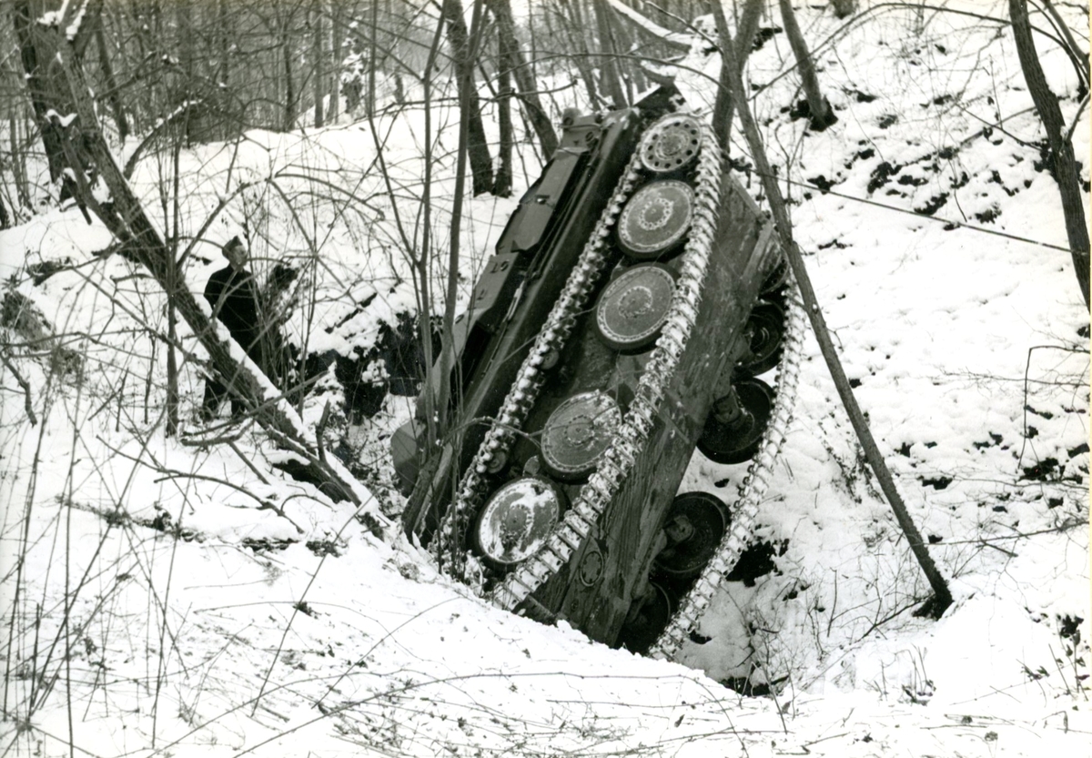 Pansarbandvagn 301, A 6. Dikeskörning, vinter. Fiskarhemmet.