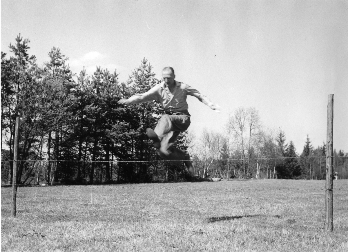 Friluftsdag, A 6. Styckjunkare Graneman forcerar ett taggtrådsstängsel.