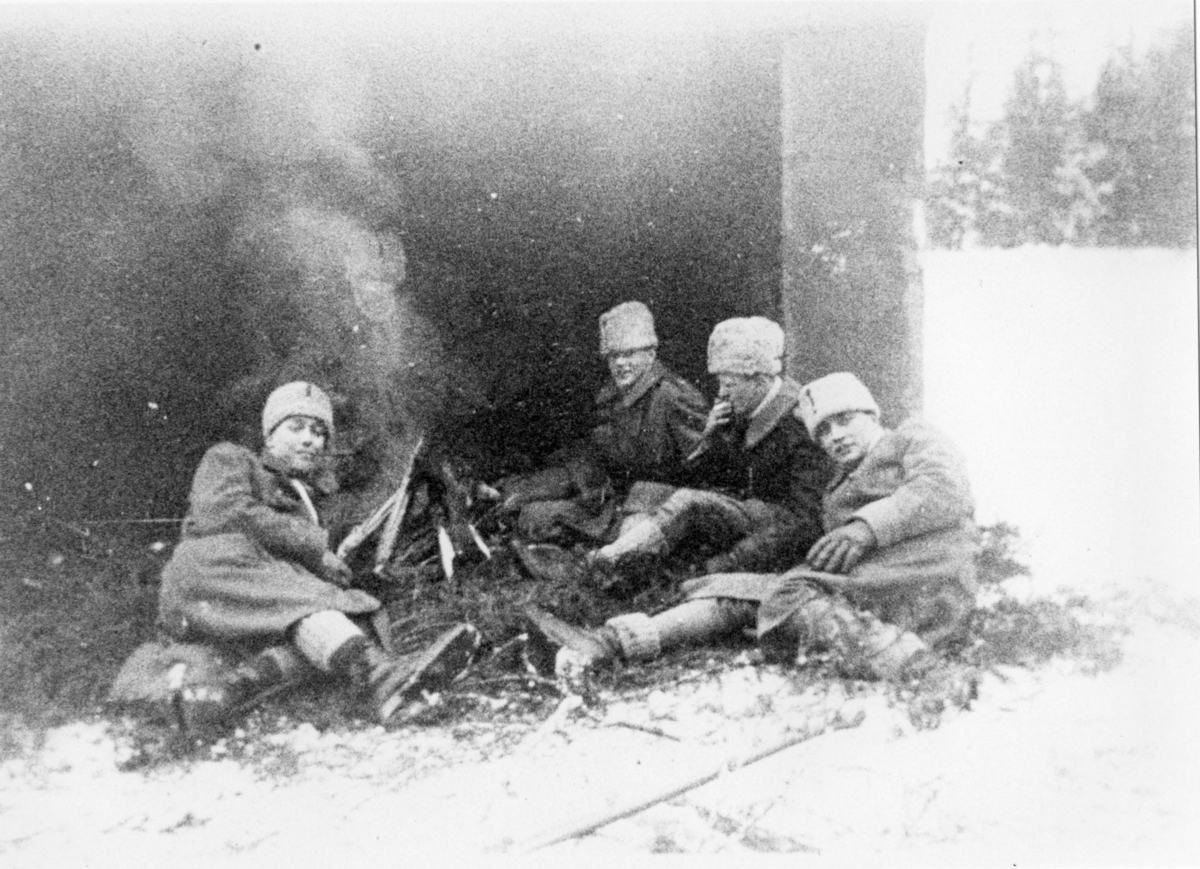Rast i värn B 7, Skillingaryd. Björk, Wigert, Ejroff, Drangert.
