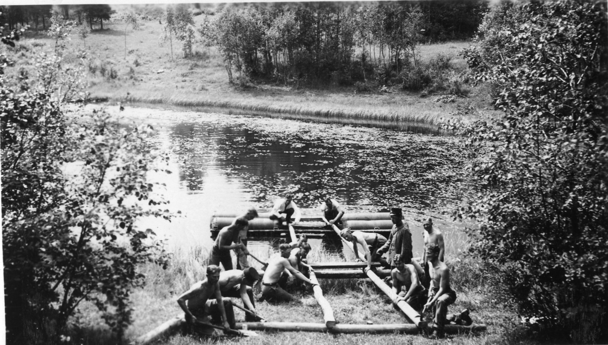 Fälttjänstgöring, A 6. Dalarna. Brobygge, utsättn.av "flytsäckselement".