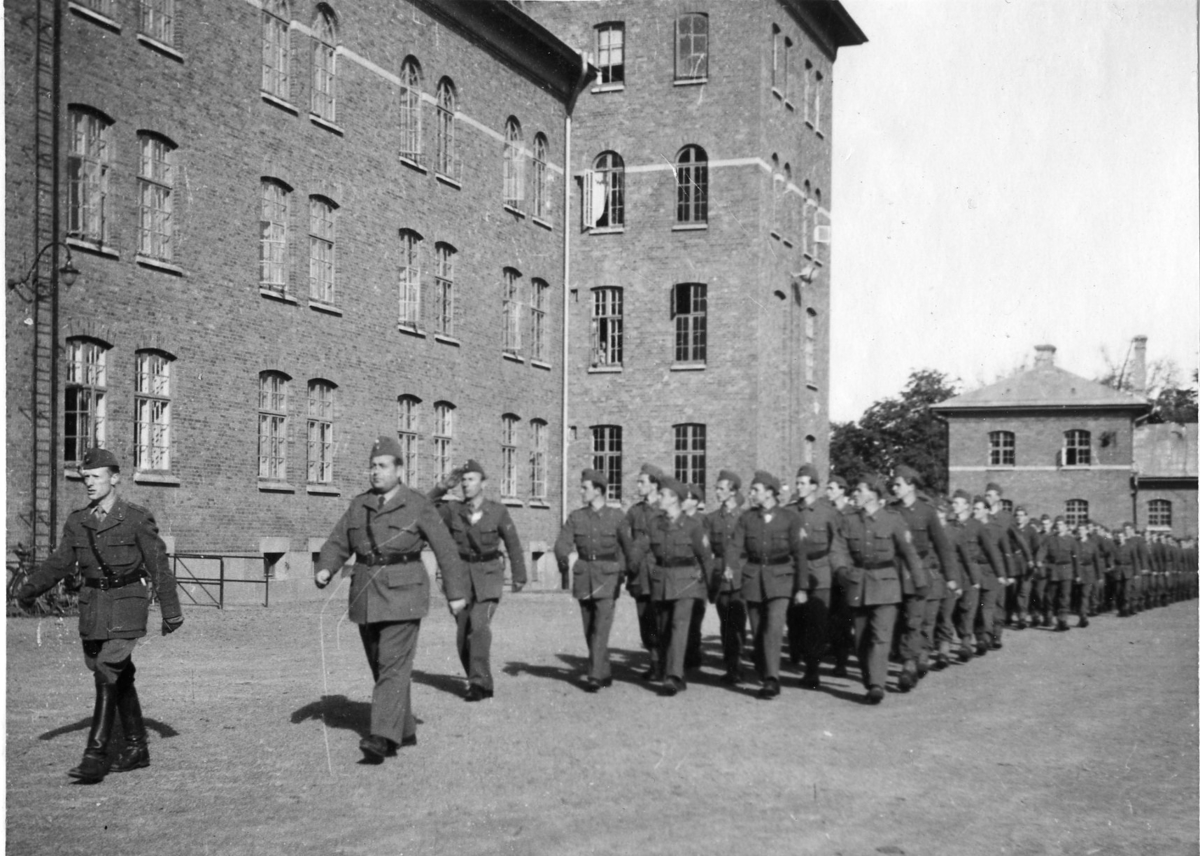 Förbimarsch, Kaserngården. A 6. Namn se notering.