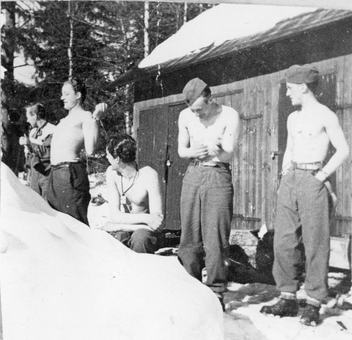Beredskap, trossbatt. IV Kårdivisionen, A 6. Knästående: Evert Larsson.