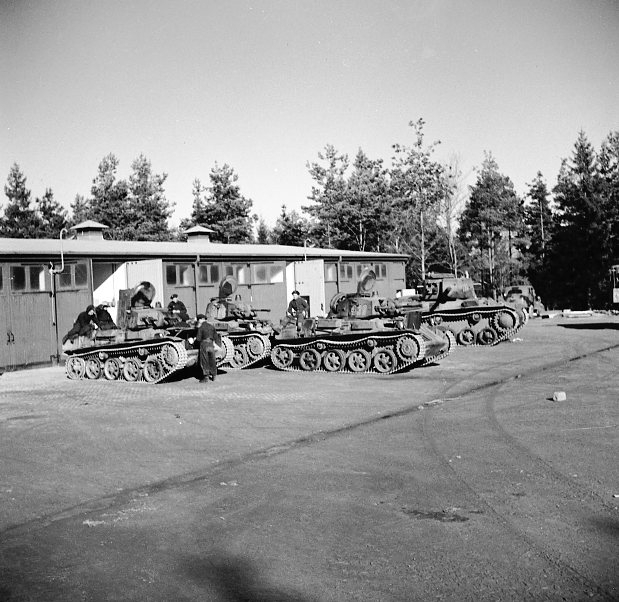 Stridsvagnar m/1938 (Lätta). Uppställda, längst bak m/1942. Från P 2.