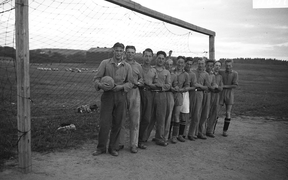 Fotbollslag, batterilag. Erik Sandstedt fyra från vänster.