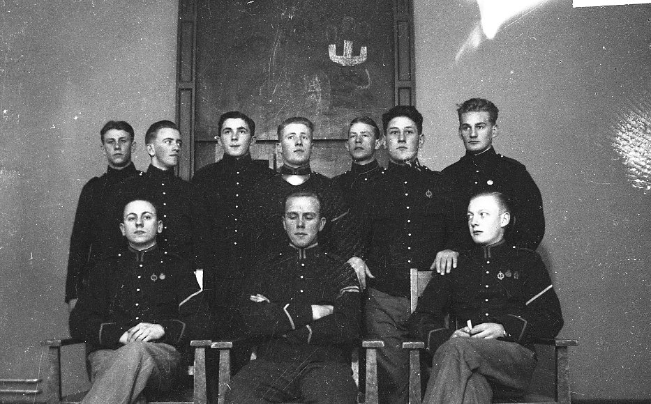 Titel: Värnpliktiga. Erik Sandstedt tvåa från höger i bakre raden.