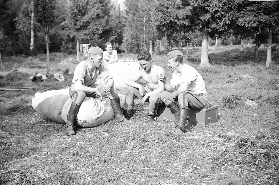 Titel: Tälthydda ihoprullad. Erik Sandstedt ti höger.