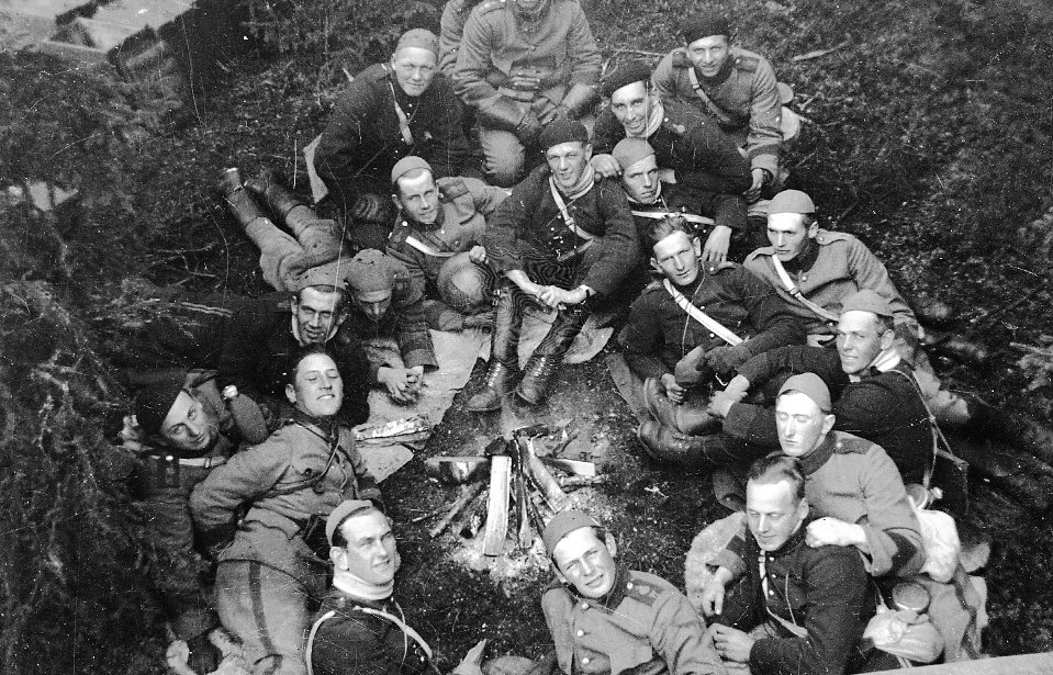 Titel: Lägereld. Erik Sandstedt två från vänster.
