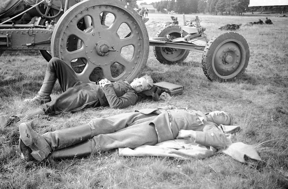 Vilande värnpliktiga. Kanon m/1934, 10,5 cm.