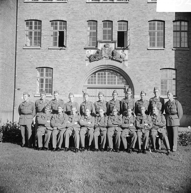 Pluton framför kasern.