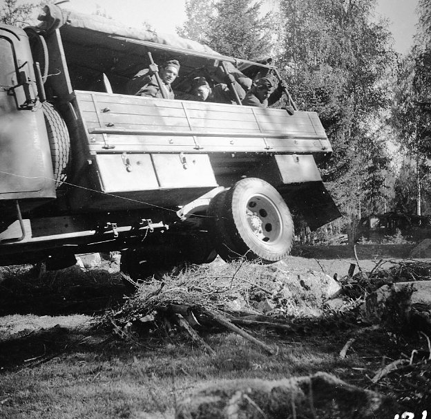 Terrängbil m/1942 M, Klöckner. Vid sidan av vägen.