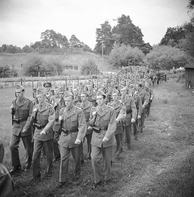 Titel: Inmarsch på Rocksjövallen. Svenska Flaggans Dag.
