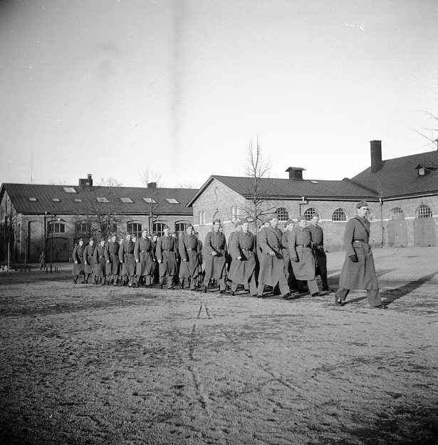 Pluton marscherar på kaserngården. Hans Forthmeiier.