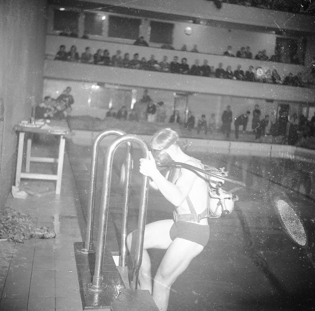 Dykträning i varmbadhuset.