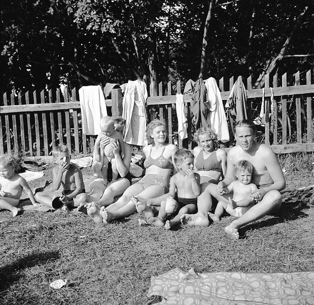 Sandstedt, Erik på badstranden med familj och bekanta.