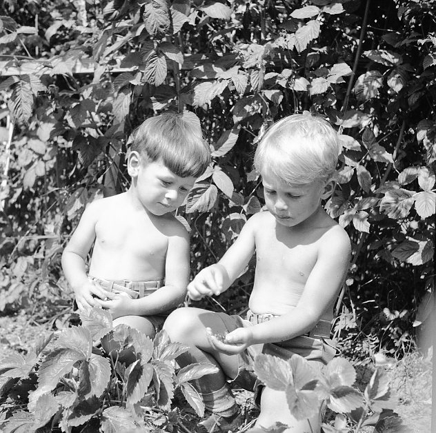 Titel: Barn (2) som plockar bär.