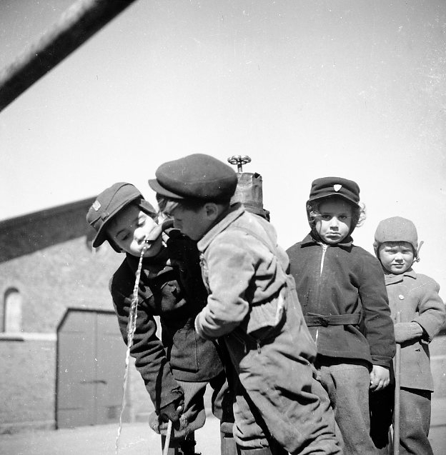 Barn som leker någonstans på kaserngården.
