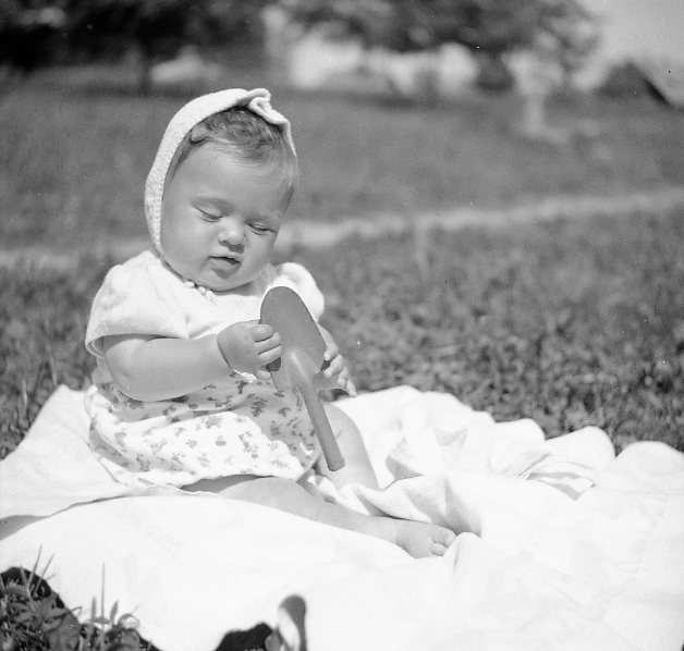 Barn som sitter på en filt.