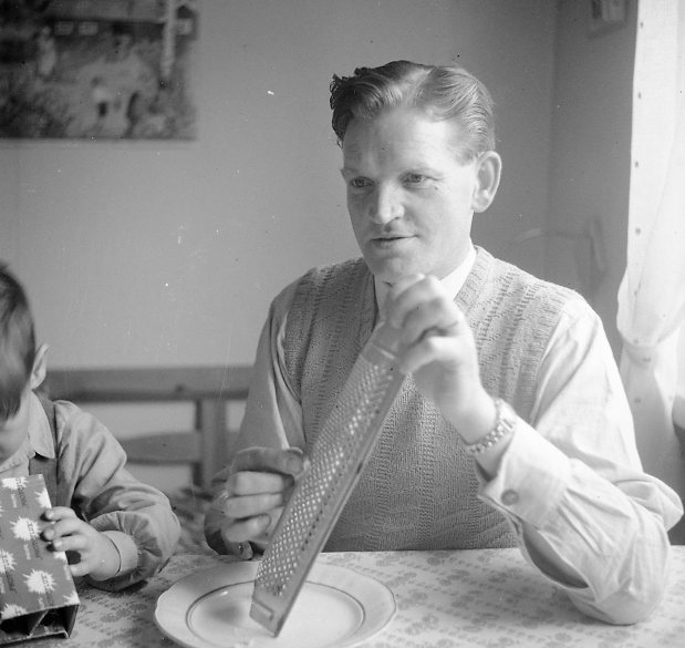Man som river grönsaker.