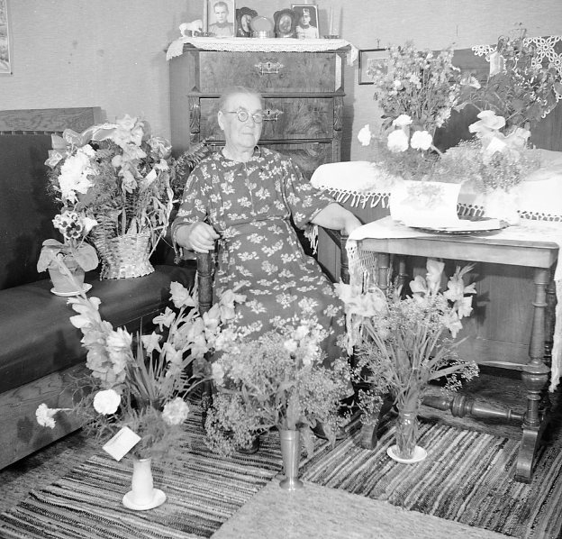 Kvinna som uppvaktas på födelsedagen.