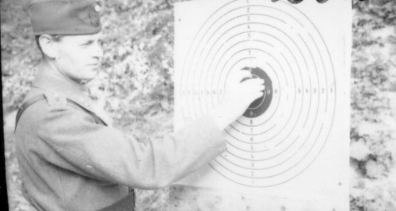 Ljunggren, sergeant, A 6, på pistolskjutningsbanan.