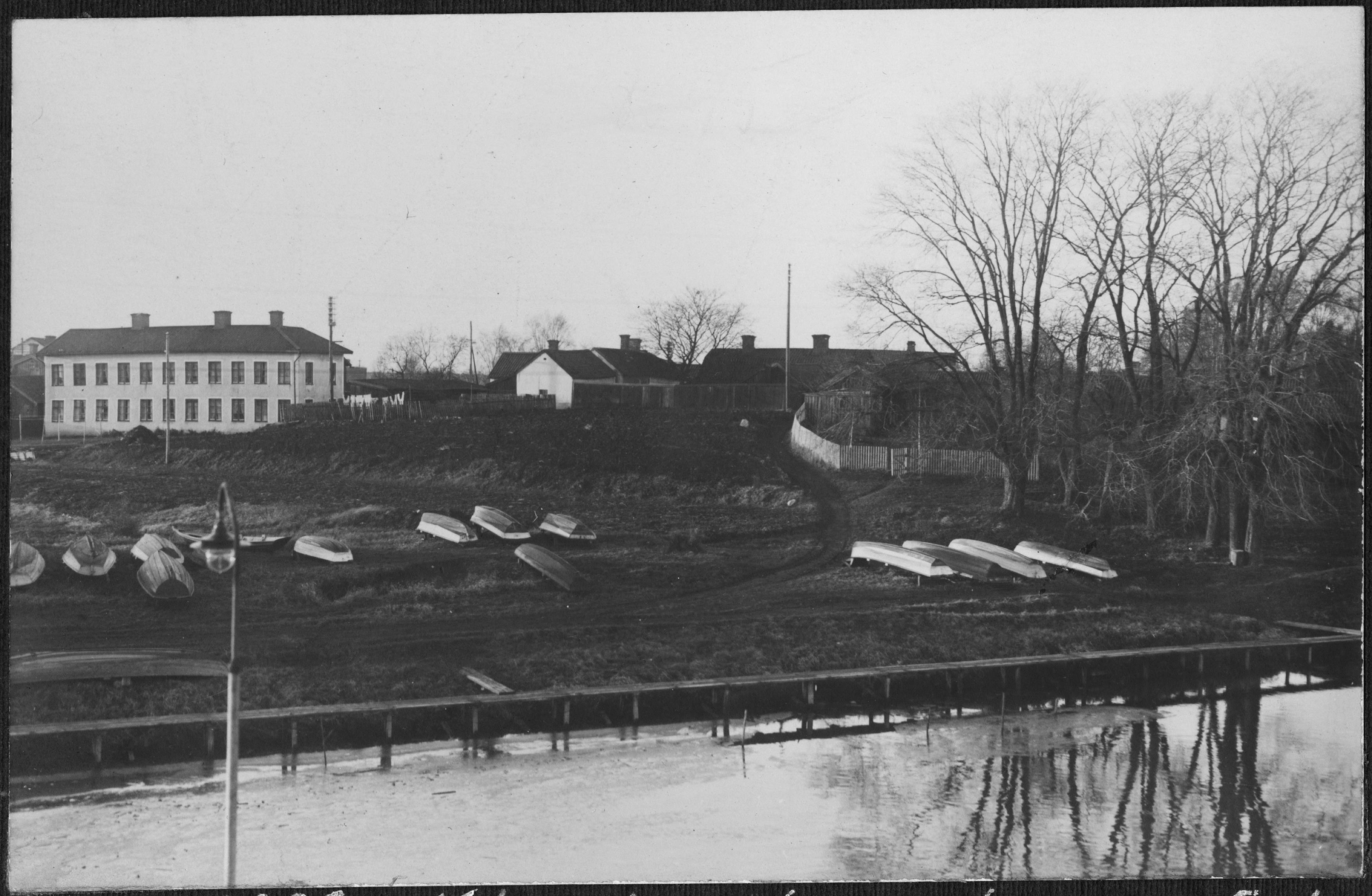 Klostertomten och Munksundet. I mitten synes den sträckmur som påträffades 1877.
