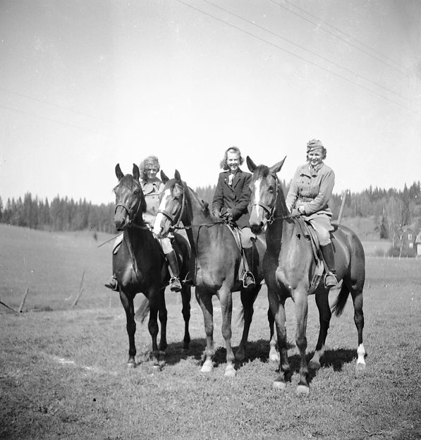 Hästhoppning. Terrängritt. Tre ryttarinnor.