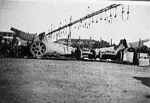 Kanon m/1934. 10,5 cm. 1.Kårbatteriet, A 6, lastar i Hässleholm.