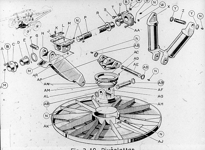 Haubits F. 15,5 cm. Detaljkatalog. Pivåplattan.