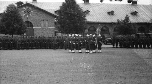 Regementschefen tar emot. Standarvakten.