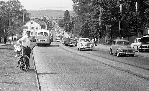 Utställningen "Rila". Bilkörer i Rosenlundsbacken.
