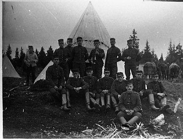 Titel: Soldater framför tälthydda.