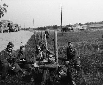 Titel: Soldater rastar vid vägkant.