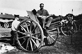 Haubits m/1910, 10,5 cm. Grupperad pjäs. Längst t. h. Yngve Josefsson.