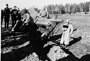 Kanon m/1917. 10,5 cm. Pjäs i diket.