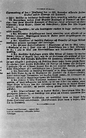 Titel: Sammandrag av fredsfördraget Danmark-Sverige 1809.