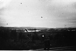 Flygande Fästningar B 17, som nödlandat på Jönköpings flygplats.
