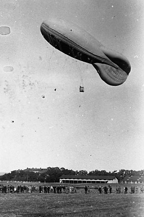 Titel: Fätballong m/1932 i luften över A 6 övningsfält.