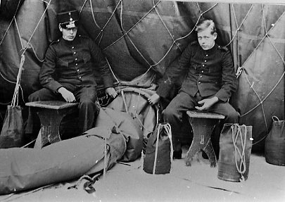 Ballongen fylles med gas. Till höger: volontär Egir, A 6.