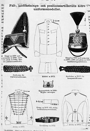 Uniformsdetaljer. Fält- och positionsartilleriets, äldre modeller.