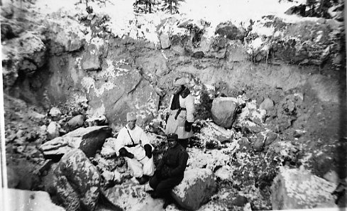 Titel: Finlandsfrivilliga vid kratern efter en 500 kg bomb.