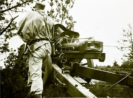 Haubits m/1939. 10,5 cm. Avfyrning.