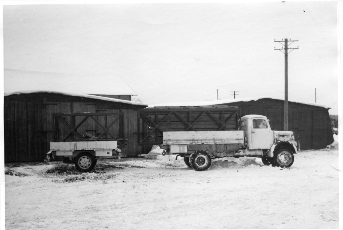 Titel: Maskinell utrustning. Terränglastbil Klockner m/42 med 1 sats balkbro 1 materiel.